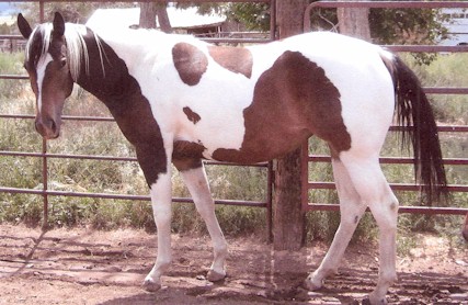 "Duel Azul" APHA 1997 Tovero Mare Duellie was started under saddle as a young horse, and has been a brood mare most of her life. We have her back in training as a saddle horse. $$Private Treaty |